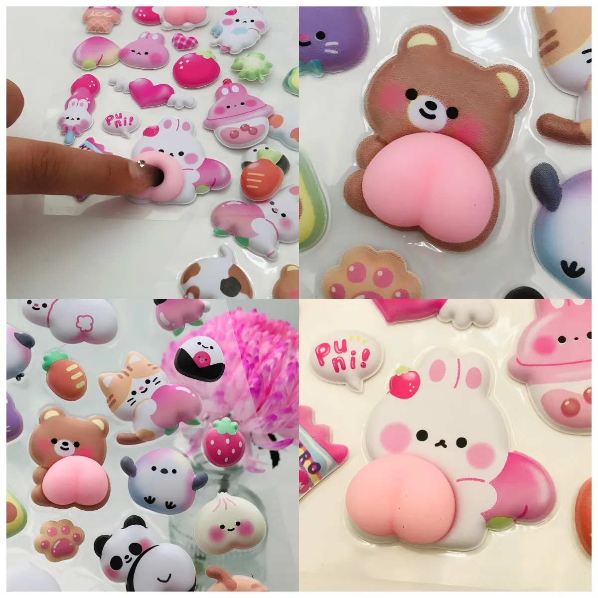 குழந்தைகளுக்கான முப்பரிமாண கார்ட்டூன் தனிப்பயன் பஃபி ஸ்க்விஷி பட் ஸ்டிக்கர்