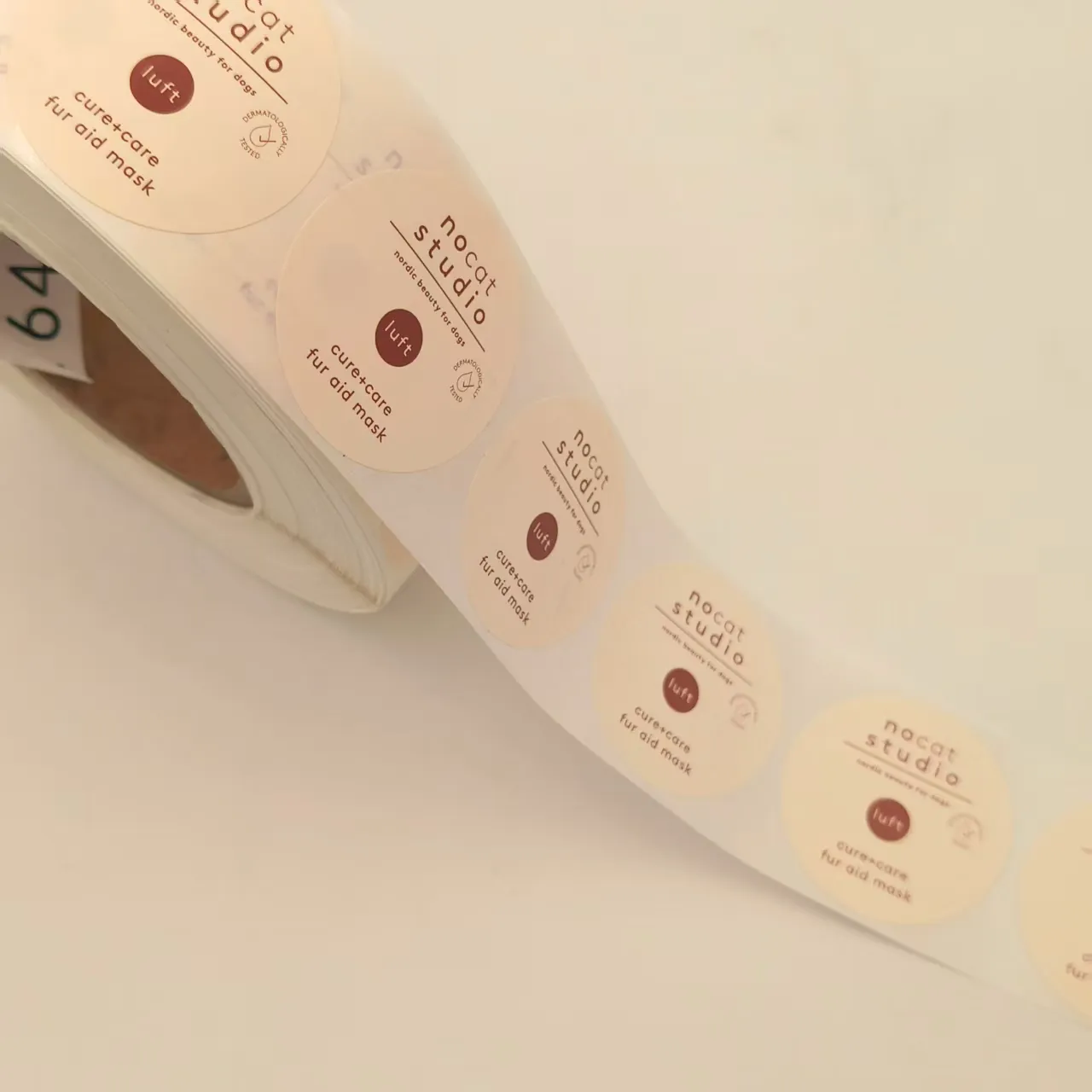 ஜோஜோபேக்கில் மேம்பட்ட தொழில்முறை அச்சிடும் தொழில்நுட்பம் மற்றும் கடுமையான தரக் கட்டுப்பாட்டு அமைப்பு உள்ளது. ஜோஜோ பேக் பல பிரபலமான உள்நாட்டு மற்றும் தோல் பராமரிப்பு பிராண்டுகளுக்கு பாட்டில் வட்டம் ஸ்டிக்கர்களையும் வழங்குகிறது. இந்த லேபிள் தயாரிப்பு பெயர் மற்றும் செயல்பாட்டை முன்னிலைப்படுத்த முடியும்.