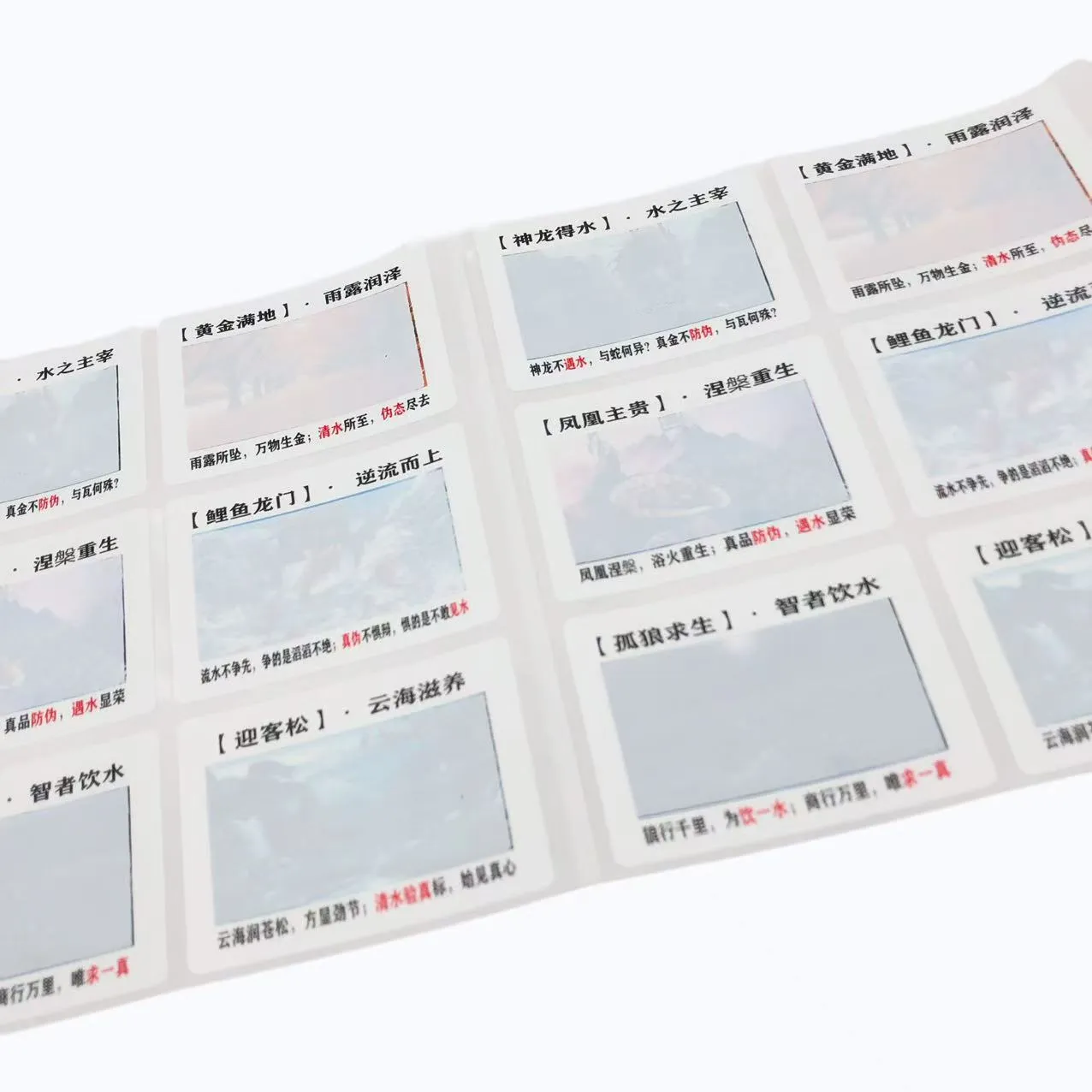 லேபிளின் பதிலைச் செயல்படுத்துவதற்கு ஒரு சிறிய நீர் தெளிப்பு போதுமானது. குறைந்த எடை மற்றும் எடுத்துச் செல்லக்கூடிய, அட்டைகள் மற்றும் உடனடி புகைப்பட பாணி பிரிண்ட்கள் போன்ற பல்வேறு வடிவங்களில் லேபிள்களை உருவாக்கலாம்.ஜோஜோ பேக்தனிப்பயனாக்குதல் சேவைகளை வழங்குகிறது, கார்ட்டூன் வடிவங்கள், பிராண்ட் லோகோக்கள், விளம்பர உள்ளடக்கம் மற்றும் பலவற்றை லேபிள்களில் அச்சிடலாம். பண்டிகை வாழ்த்து அட்டைகள், குழந்தைகளுக்கான கல்வி பொம்மைகள், பிராண்ட் மார்க்கெட்டிங், கள்ளநோட்டு எதிர்ப்பு மற்றும் பிற பயன்பாடுகளுக்கு அவை சிறந்தவை.