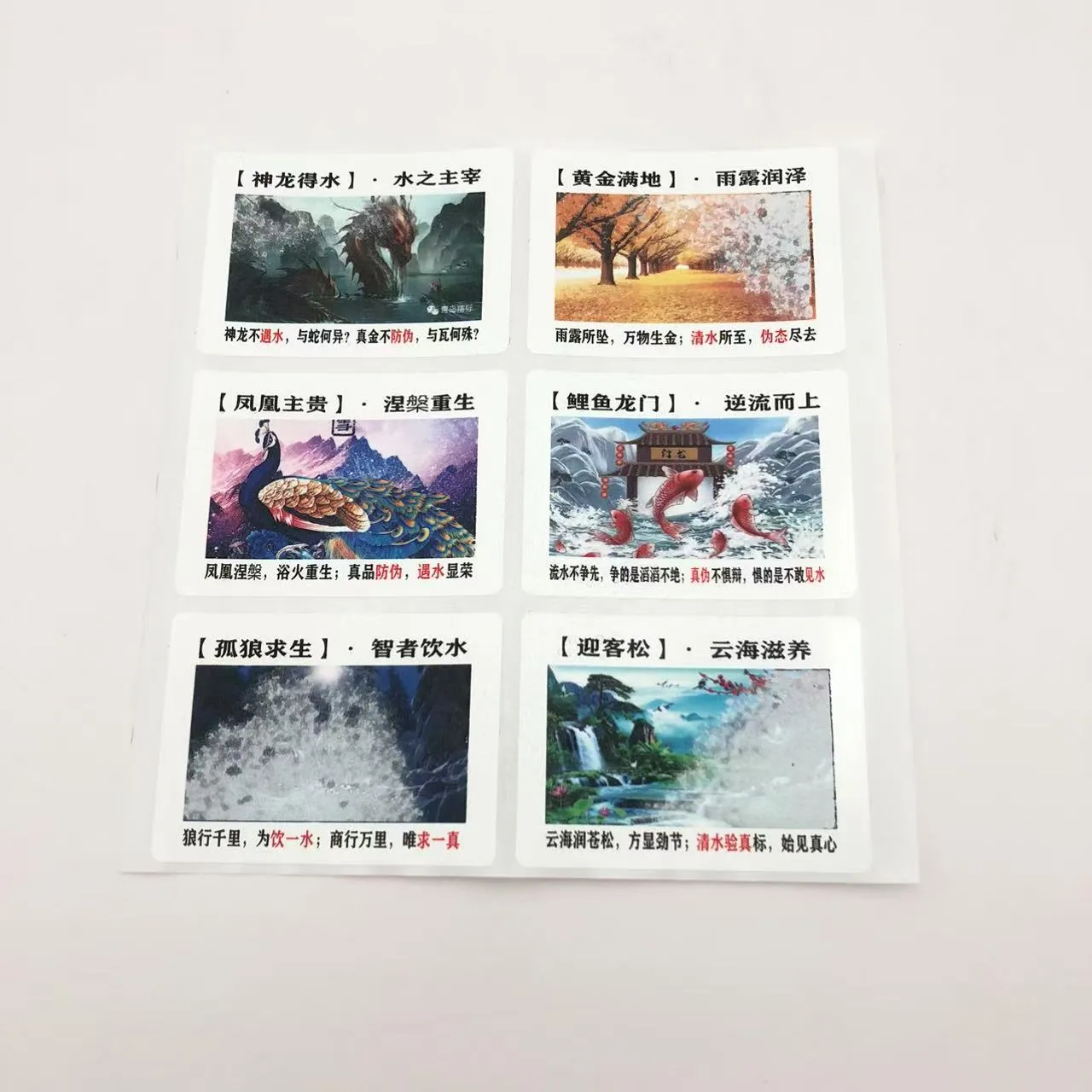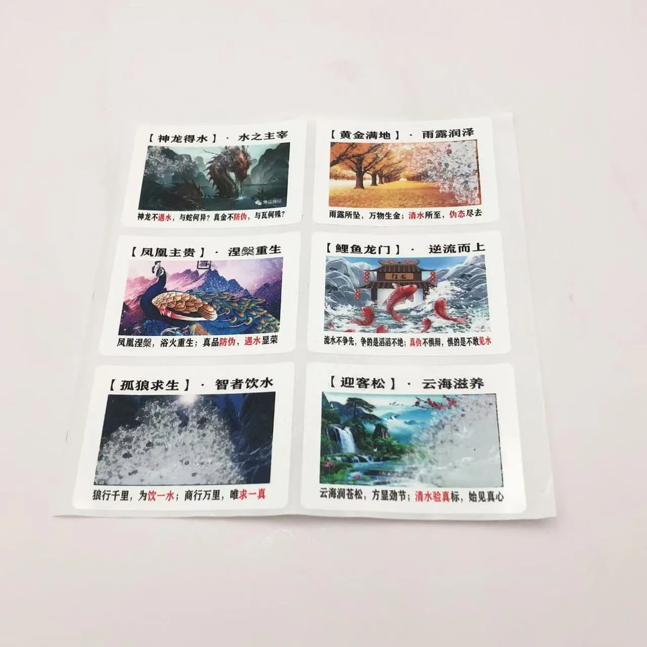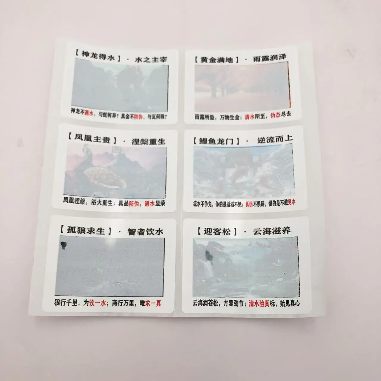 வண்ண மாற்ற நீர் உணர்திறன் லேபிள்கள் மறைந்த வடிவங்களைக் காண அல்லது வண்ண மாற்றங்களைத் தூண்டுவதற்கு மை மற்றும் தண்ணீருக்கு இடையே உள்ள உடல் அல்லது இரசாயன எதிர்வினைகளைப் பயன்படுத்துகின்றன. சிறப்பு செயல்முறைகள் மற்றும் உபகரணங்களுடன் தயாரிக்கப்பட்ட இந்த லேபிள்கள் சிறந்த கள்ளநோட்டு எதிர்ப்பு அம்சங்களை வழங்குகின்றன. உலர்த்திய பிறகு, சில வகைகள் அவற்றின் ஆரம்ப நிலைக்குத் திரும்பலாம், மீண்டும் மீண்டும் பயன்படுத்த முடியும்.