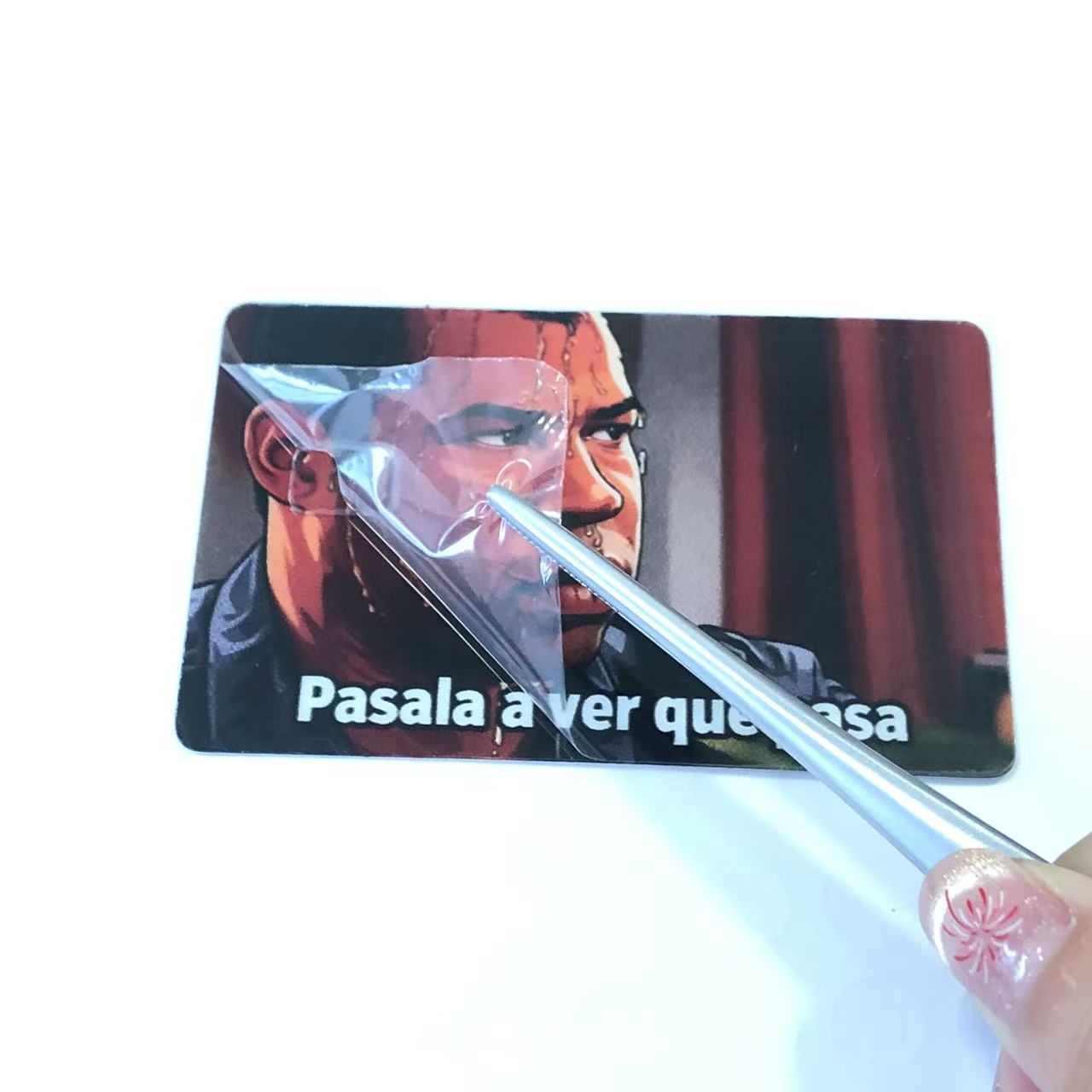 போக்குவரத்தின் போது தயாரிப்பு தரத்தை உறுதி செய்வதற்காக, ஒவ்வொரு கிரெடிட் கார்டு ஸ்டிக்கரும் மேற்பரப்பில் ஒரு பாதுகாப்பு படத்துடன் பொருத்தப்பட்டிருக்கும். இந்த பாதுகாப்பு அடுக்கு ஸ்டிக்கர்களை கீறல்கள், தூசி மற்றும் போக்குவரத்தில் ஏற்படக்கூடிய பிற சாத்தியமான சேதங்களிலிருந்து திறம்பட பாதுகாக்கிறது. பொருட்களைப் பெற்றவுடன், வாடிக்கையாளர்கள் கிரெடிட் கார்டு ஸ்டிக்கர்களின் தெளிவான மற்றும் துடிப்பான தோற்றத்தை வெளிப்படுத்த பாதுகாப்புப் படத்தை மட்டும் உரிக்க வேண்டும்.