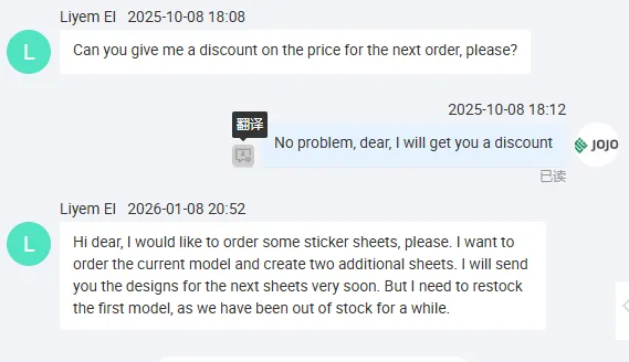 வாடிக்கையாளர் மீண்டும் JOJO பேக் எபோக்சி ரெசின் லேபிள்களை ஆர்டர் செய்துள்ளார்