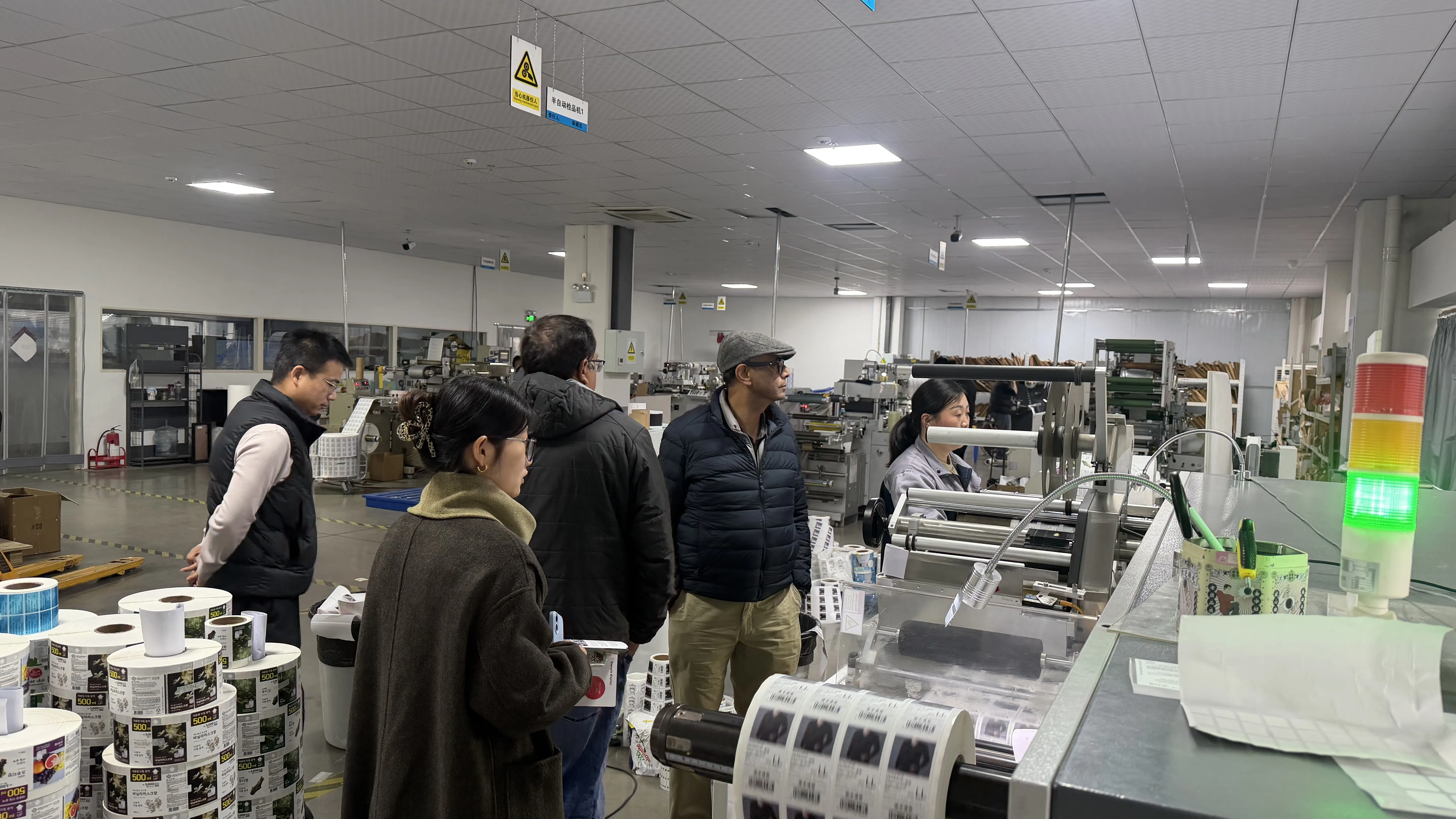 இந்த வருகையின் போது, ​​நிறுவனத்தின் தலைவர்கள் மற்றும் தொடர்புடைய துறைத் தலைவர்களுடன், இந்திய வாடிக்கையாளர் குழு தொடர்ச்சியாக எங்கள் நிறுவனத்தின் முக்கிய பகுதிகளான உற்பத்திப் பட்டறை, தர ஆய்வு மையம் மற்றும் மூலப்பொருள் கிடங்கு போன்றவற்றிற்குச் சென்று, மூலப்பொருள் தேர்வு, துல்லியமான அச்சிடுதல், டை-கட்டிங் முதல் தயாரிப்பு ஆய்வு வரை பேக்கேஜிங் லேபிள்களின் முழு செயல்முறையையும் அவதானித்தது.