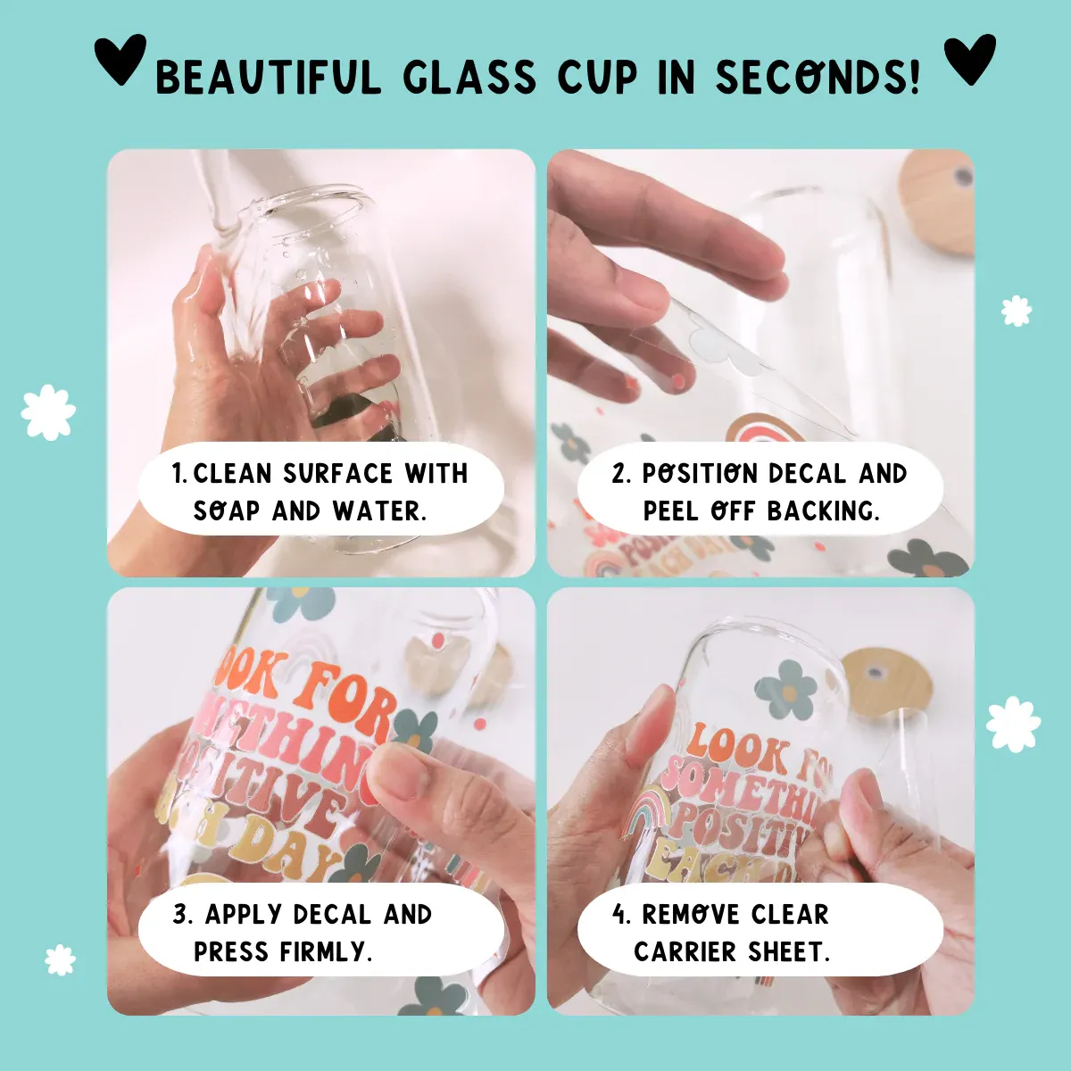 1. 16oz கண்ணாடி கப் மேற்பரப்பு சுத்தமாகவும், உலர்ந்ததாகவும், எண்ணெய் இல்லாததாகவும் இருப்பதை உறுதிசெய்து, தூசி, நீர் கறை அல்லது கிரீஸ் ஆகியவற்றை அகற்ற ஆல்கஹால் பேட்கள் அல்லது பஞ்சு இல்லாத துணியால் மெதுவாக துடைக்கவும்.