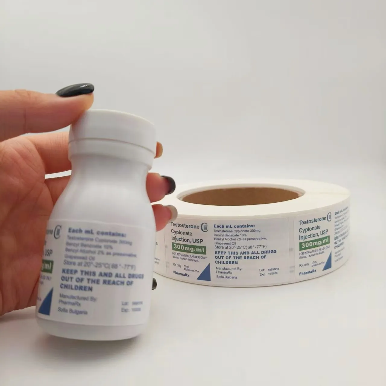 பாட்டில் விவரக்குறிப்புகள்: மருந்து பாட்டிலின் விட்டம், உயரம் மற்றும் வடிவத்தை (சுற்று, சதுரம், முதலியன) பொருத்தவும், லேபிளை பாட்டிலைத் தாண்டாமல் அல்லது பாட்டிலின் வாய் மற்றும் அடிப்பகுதியை மூடாமல் முழுமையாக ஒட்டிக்கொள்ள முடியும் என்பதை உறுதிப்படுத்தவும்.
