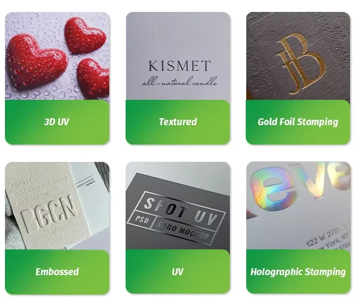 புடைப்பு: வாசனை மெழுகுவர்த்தி லேபிள்களில் உயர்த்தப்பட்ட, முப்பரிமாண வடிவங்கள் அல்லது உரையை உருவாக்குகிறது. இது அமைப்பு மற்றும் தொட்டுணரக்கூடிய உறுப்பைச் சேர்க்கிறது, வாசனை மெழுகுவர்த்தி லேபிள்களை தொடுவதற்கு மிகவும் ஈர்க்கிறது. லோகோக்கள் அல்லது அலங்கார மையக்கருத்துக்களுடன் புடைப்பு நன்றாக வேலை செய்கிறது, இது பிரீமியம் உணர்வை மேம்படுத்துகிறது.