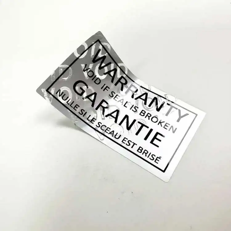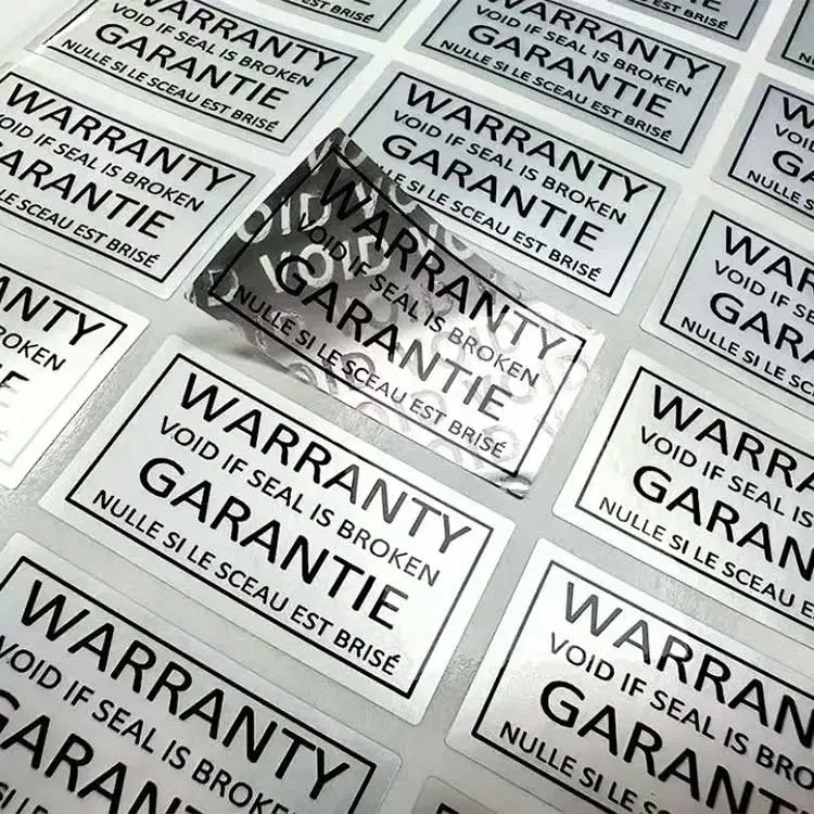 உத்தரவாதம் இல்லாத லேபிள்கள் பொதுவாக ஒரு பொருளின் முக்கியமான பாகங்களில் ஒட்டப்படும். இந்த லேபிள்கள் சேதமடையாத வகையில் வடிவமைக்கப்பட்டுள்ளன, உத்தியோகபூர்வ அங்கீகாரம் இல்லாமல் யாராவது தயாரிப்பைத் திறக்கவோ, பிரிக்கவோ அல்லது மாற்றவோ முயற்சித்தால், லேபிள் சேதமடையும்.