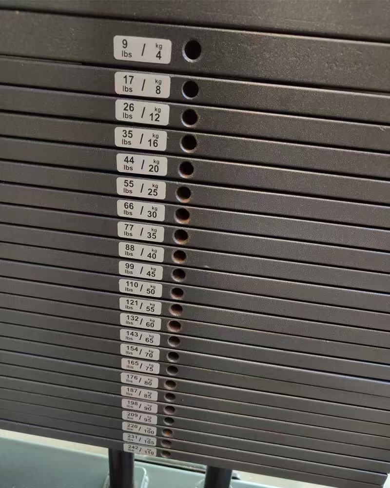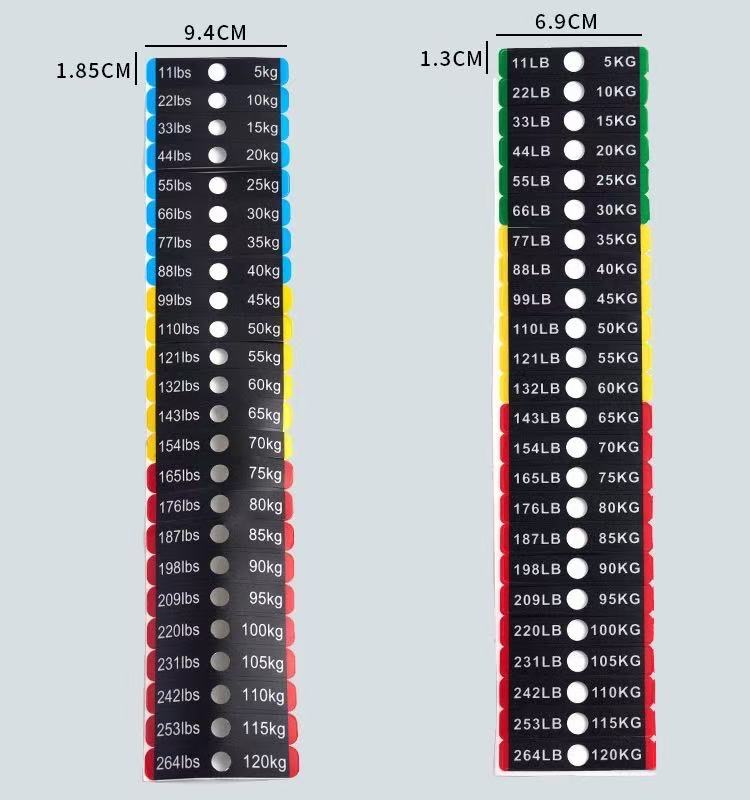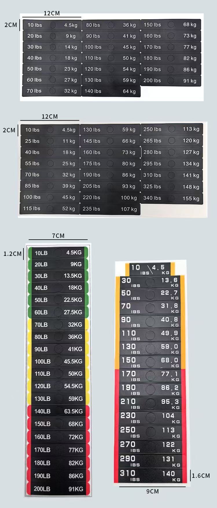 ஒவ்வொரு ஸ்டிக்கரும் எடை மதிப்புகளுடன் தெளிவாகக் குறிக்கப்பட்டுள்ளது, பயனர்கள் தங்கள் பயிற்சித் தீவிரத்திற்கு ஏற்ற எடைத் தொகுதிகளை விரைவாகக் கண்டறிந்து தேர்ந்தெடுக்கவும், உடற்பயிற்சியின் போது அடிக்கடி எடை போடுவதைத் தவிர்க்கவும் உதவுகிறது.