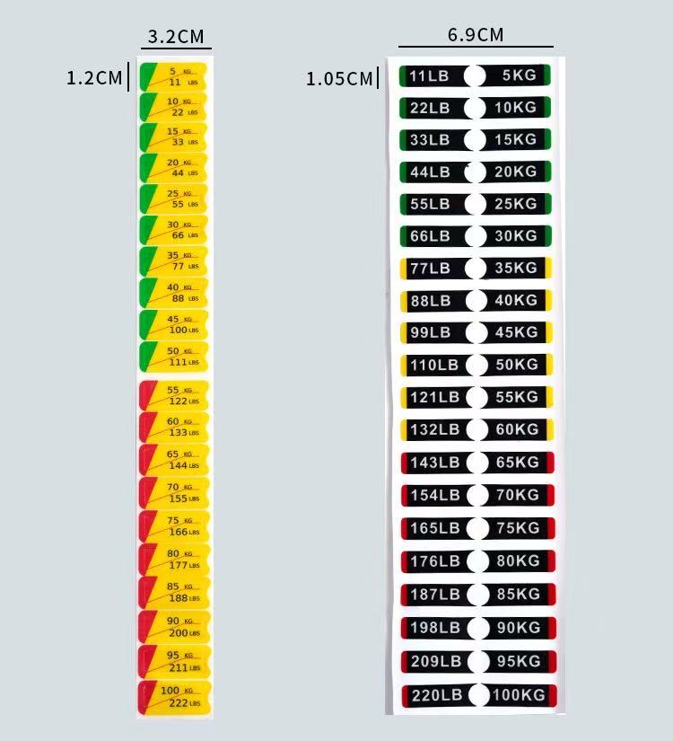 ஃபிட்னஸ் கருவி எடைத் தொகுதிகளுக்கான இந்த எடை ஸ்டிக்கர்கள், ஃபிட்னஸ் கியரின் எடையை லேபிளிடுவதற்காக பிரத்யேகமாக வடிவமைக்கப்பட்ட அடையாள ஸ்டிக்கர்களின் வகையாகும். அவை பொதுவாக PVC பொருட்களால் ஆனவை, மேலும் குறிப்பிட்ட பரிமாணங்களுக்கான தயாரிப்பு அளவுரு அட்டவணையைப் பார்க்கவும். எடை மதிப்புகள் ஸ்டிக்கர்களில் தெளிவாகக் குறிக்கப்பட்டுள்ளன, இது பயனர்களை விரைவாகக் கண்டறிந்து பொருத்தமான பயிற்சி எடையைத் தேர்ந்தெடுக்க அனுமதிக்கிறது.